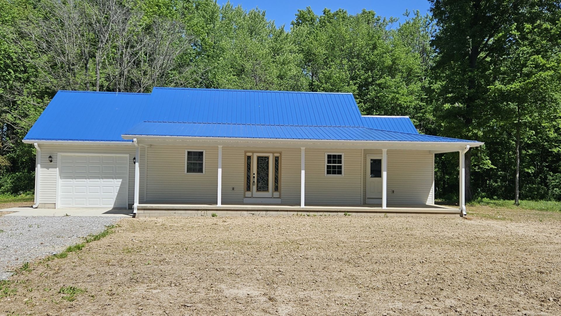 Brand new home with 2 bedrooms, large livingroom/dining/kitchen area, covered front and back porches, attached garage, edge of town location.