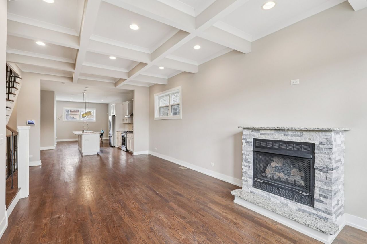Discover this stunning newer contemporary home in red-hot Humboldt Park, blending modern luxury with everyday comfort. The main level features 10-foot ceilings, hardwood floors, and sun-filled living and dining spaces with a sleek gas fireplace. The chef's kitchen shines with a marble chevron backsplash, soft-close shaker cabinetry, stainless steel appliances, a granite island with breakfast bar, and walk-in pantry, flowing seamlessly into the family room and out to the rear deck. Upstairs, the primary suite offers a spa-like Carrara marble bath with double vanity and freestanding shower, plus two additional bedrooms, a full guest bath, and laundry hookups. The fully tiled lower level includes a spacious rec room with wet bar and wine fridge, a private fourth bedroom, full bath, and laundry room. A fully fenced backyard with cherry trees and beautiful landscaping completes this exceptional home.