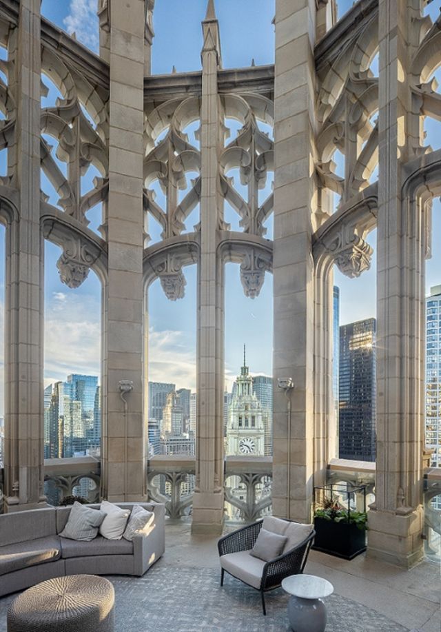 This Premier Tower Residence features south, east & north views - lake, river and city views. Tribune Tower Residences offers a once-in-a lifetime opportunity to own a home in one of Chicago's most iconic buildings. There are 162 residences with 56 different floor plans, creating many one-of-a-kind residences. It is appointed with the most luxurious finishes: custom millwork and cabinetry, SubZero, Wolf and Miele appliances, marble primary bath, wide plank white oak wood floors, to name a few. Consider the over 55,000 SF of amenity space, an extension of your home: 25th floor Crown Terrace with panoramic views surrounded by spectacular flying buttresses, the 7th floor indoor pool and sundeck including lounging and outdoor grilling areas with views framed by the iconic Chicago Tribune sign, the 3rd floor private park and abundant work and social gathering spaces including game rooms for darts and billiard, the 2nd floor fitness center, sports lounge with simulator and large putting green, spa treatment rooms with steam and saunas, and a private dog park. 24/7 staff. It is a lifestyle beyond compare. Please note some photos are of a similar model residence.