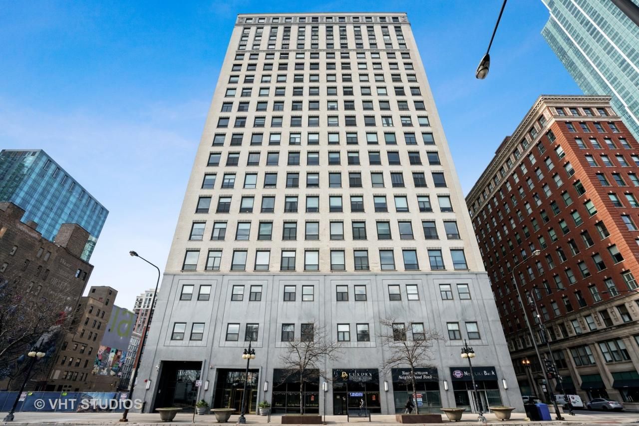 Great NE corner 2 bed/2 bath 1750sqft condo in South Loop with views of Grant Park, Lake Michigan and the skyline. Upon entering the unit, you have a private foyer area with coat closet and your private in-unit laundry room with storage. This light and bright unit has an open floor plan, light wood floors and 13 foot ceilings which allow tons of natural light to flow throughout the entire unit. The spacious living area features large windows, a gas fireplace and enclosed office area for all of your remote work or school. The white and bright kitchen features generous cabinet space, new stainless steel appliances, granite countertops and breakfast bar. The oversized primary bedroom has two walk in closets and has a large private bathroom, complete with double sink vanity, plenty of storage, shower stall and separate tub. The second bedroom is good in size and shares the hall bathroom. The full amenity building offers 24 hour doorman, exercise facility, storage locker and bike room AND you have 1 parking space included. Rental and pet friendly.