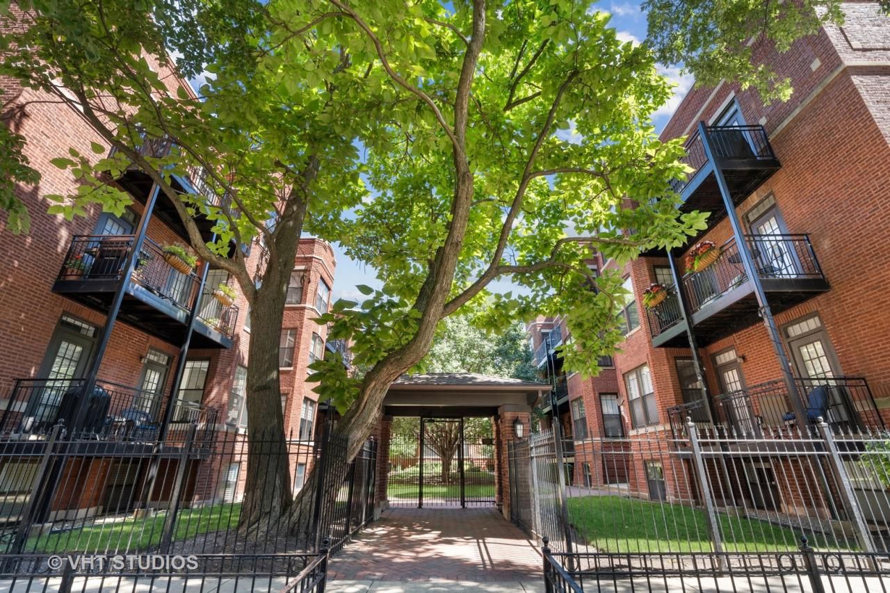 Bright top floor 2 bed/2 bath condo in prime Lincoln Park location on a quiet tree-lined street. This unit is ideally situated in the middle of the complex and overlooks the beautiful and lush courtyard. The open floor plan is wide and spacious and great for entertaining with hardwood floors throughout. Beautifully updated kitchen with eat-in breakfast bar, stainless steel appliances, granite countertops and complementary tile backsplash. The separate dining area has a sliding door to the balcony, which overlooks the courtyard, adds tons of natural light. The living room features painted brick around the decorative fireplace, plus a cozy nook for reading or office space with an additional view of the courtyard. The primary bedroom is large enough to fit a king-sized bed, features a walk-in closet with Elfa storage and an en-suite bathroom. The second bedroom offers great flexible space as it fits a full size bed plus furniture or desk for an office space. Hall full bathroom and in-unit laundry complete this condo, plus private storage unit included. Nearby you'll find CTA Brown Line, Wiggly Field Dog Park, tons of restaurants/nightlife/coffee shops, Target and close to Lake Shore Drive. So convenient to several grocery stores too, including Dom's Kitchen and Market and Trader Joe's. Easy (permit) street parking.