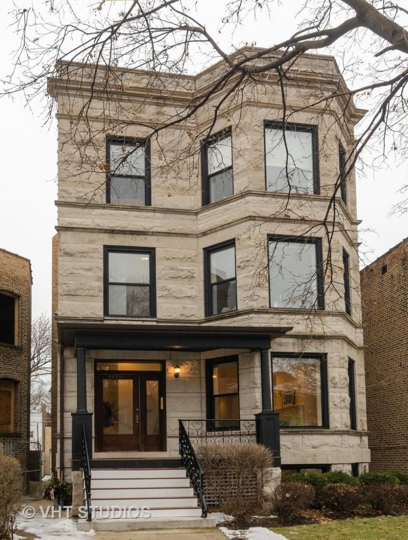 Absolutely Stunning 2200sf duplex down in classic Greystone building that was gut rehabbed in 2007. Crown and panel molding, refinished hardwood floors on 1st floor and radiantly heated lower level with carpeting. Open dining and living rooms with gas fireplace. Kitchen has Viking stove, Bosch DW, New French door refrigerator, all stainless appliances with 42 cabinets, & granite counters. Walk in pantry, and breakfast bar. Bay windows in living and dining areas. 1st fl. Master easily fits a king bed, organized walk in closet, & double bowl sink in spa bath with jet tub and steam shower. Hallway entrance to the large deck overlooking common yard & your private 567sf garage roof deck. Two car tandem garage has 1 inside and 1 outside space. High ceiling lower level is surrounded by windows with a large family room, gas fireplace, 2 generous bedrooms, full bath with jet tub and side by side laundry. New utilities include gas forced air heat, central air and water heater. All rooms freshly painted. Extra wide tree lined Olive Ave. hosts a vibrant & diverse community just a short walk to Clark St. shops, restaurants, & entertainment; Peirce, Waldorf, & Rogers Park Montessori schools. Sacred Heart, & Lycee Francois are a short drive away. Walk to the red line el, north Lincoln Park and the beach,plus 6 professional live theaters nearby!